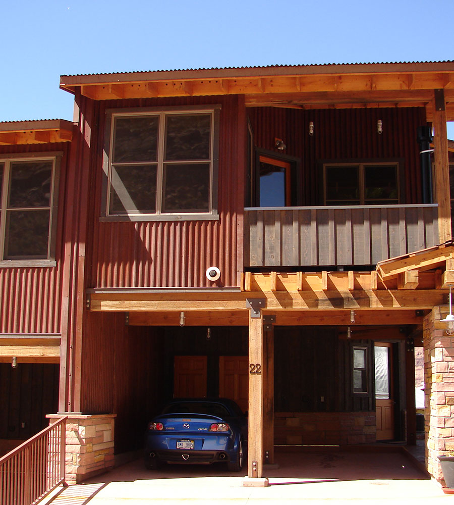 Unit 18 is our colorful and creative 1 bedroom retreat. Enjoy the cozy breakfast nook with wide-open views of the red rock or have your morning cup of coffee on the Juliet balcony off the master bedroom and take in the glory of a Moab morning with a grand view of The Portal as your backdrop. Unit 18 is perfect for a couple or small family with kids. The ground level has a half bathroom, a laundry closet with a stackable washer/dryer, a small room with bunk beds (under 14 only) and a door leading to a deck with a very inviting wicker chair and table. Up the stairs is the main living space which includes a fully equipped kitchen, full size refrigerator, oven, stove, microwave and coffee maker and it all leads out onto a covered deck with comfortable seating and a fireplace for cooler nights. The living area has two lounge chairs with a flat screen TV, and the master bedroom has a dreamy king-sized bed, bathroom with double sinks and a large walk-in shower. A fun loft space completes this easy living townhouse with a twin sized bed tucked away for additional privacy. Pull right into the 2-space carport dedicated to your unit with all your adventure toys knowing you don’t have to haul anything through a lobby.